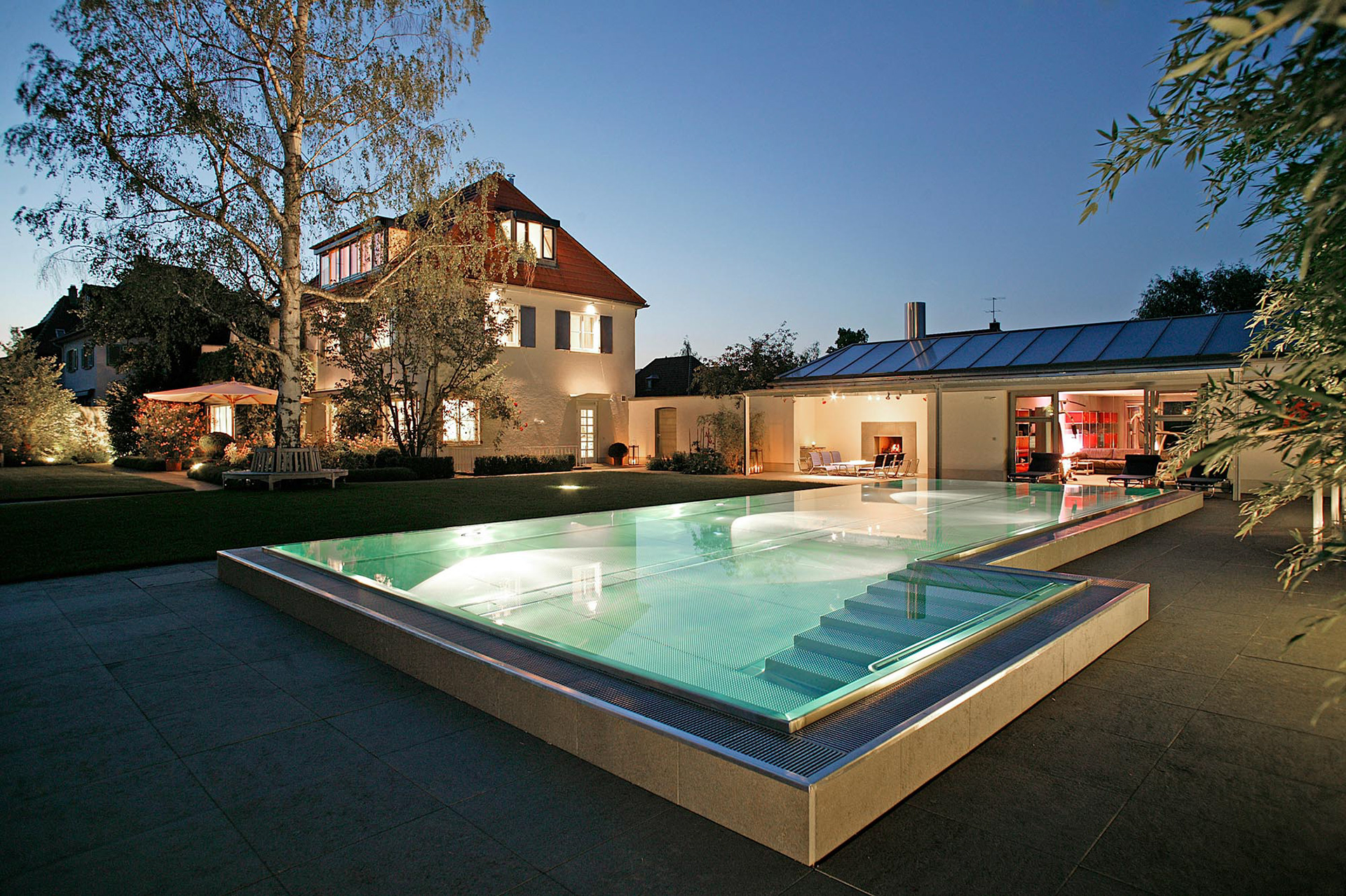 Schwimmbad-Fotografie ist zwingend Schönwetter-Fotografie, es sei denn, bei der abzulichtenden Anlage handelt es sich um ein Hallenbad. Da oft bei sehr hohem Sonnenstand fotografiert wird, ist viel Blitztechnik erforderlich, um die starken Kontraste abzumildern. Das im Auftrag von Schwimmbad + Sauna entstandene Foto ganz unten etwa wäre ohne große Akkublitze nicht möglich gewesen. Insgesamt vier davon sorgen in diesem Fall dafür, dass die Sommerküche und der Saunabereich nicht komplett im Schatten liegen. Und dass sich die Karbon-Schwalldusche knackig präsentiert.