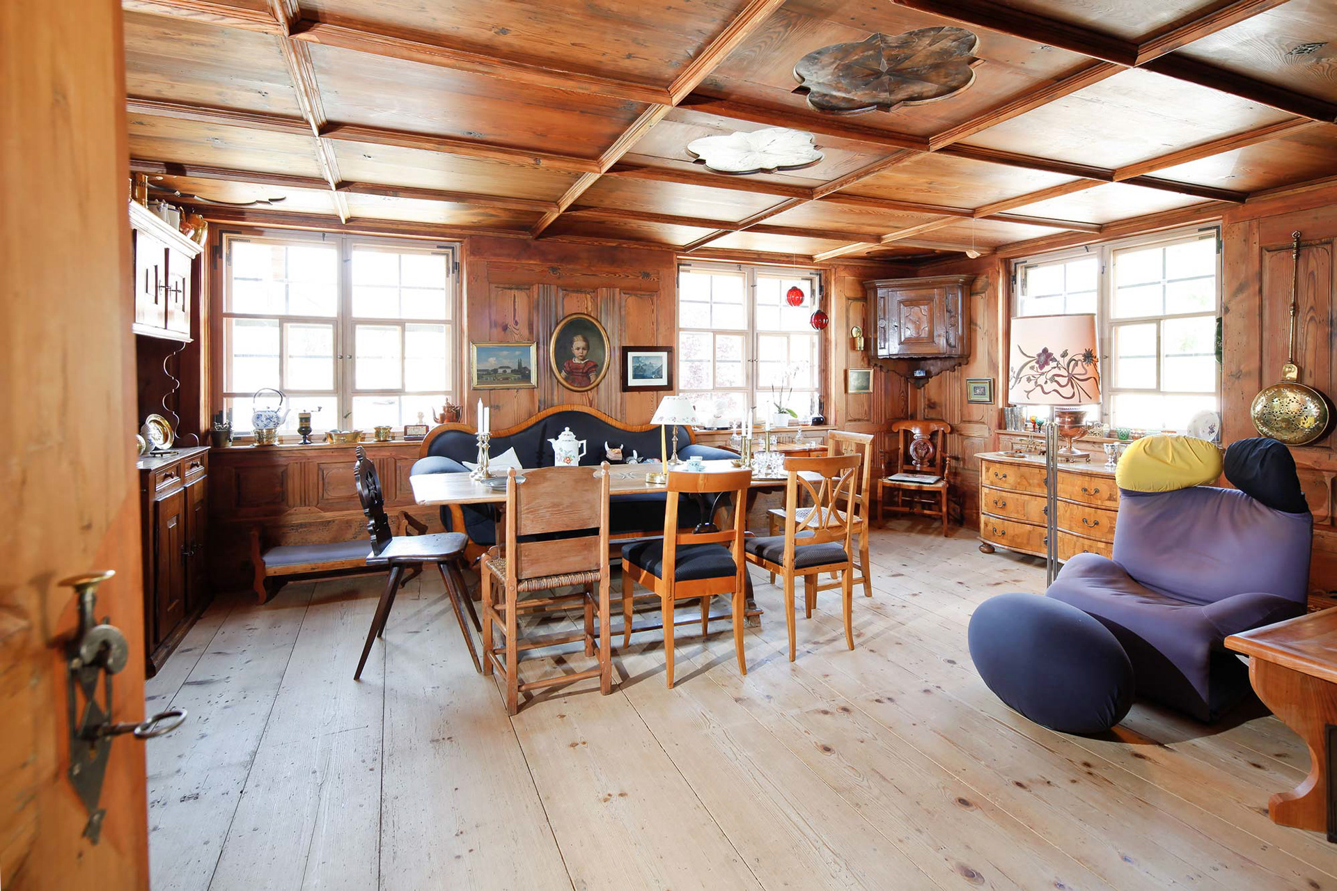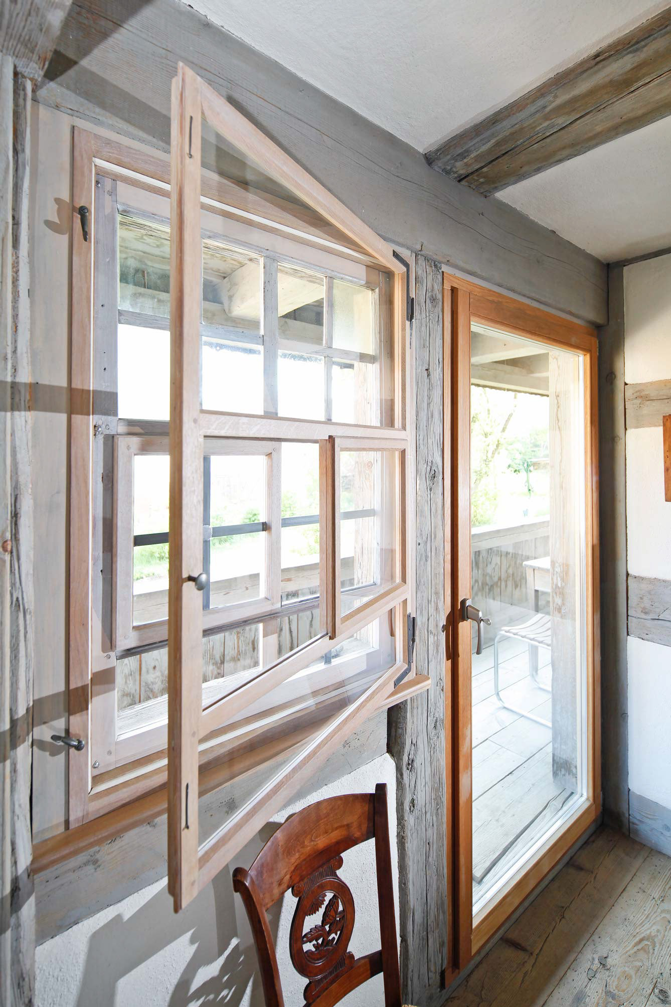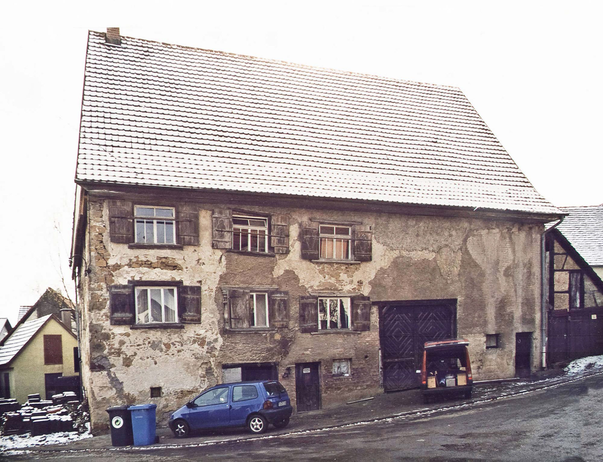 Höchst marode – gleichzeitig hochkarätiges Kulturdenkmal: Das 1685 als Sichtfachwerkbau erstellte ehemalige Vogtei war Mitte des 18. Jahrhunderts mit Kalksteinplatten verkleidet worden. Bauphysikalisch ein fataler Fehler. Denn hinter den Platten vermoderten die meisten Balken. Woraufhin sich der Ostgiebel im Laufe der Jahre um 1,50 Meter nach hinten neigte, was Sicherungsmaßnahmen erforderlich machte. Dementsprechend lange stand die Immobilie zum Verkauf. Erst ein unerschrockenes Ehepaar und ihr Architekt Alfons Bürk, Rottweiler Spezialist für eigentlich hoffnungslose Sanierungsfälle, hauchten dem Objekt neues Leben ein.